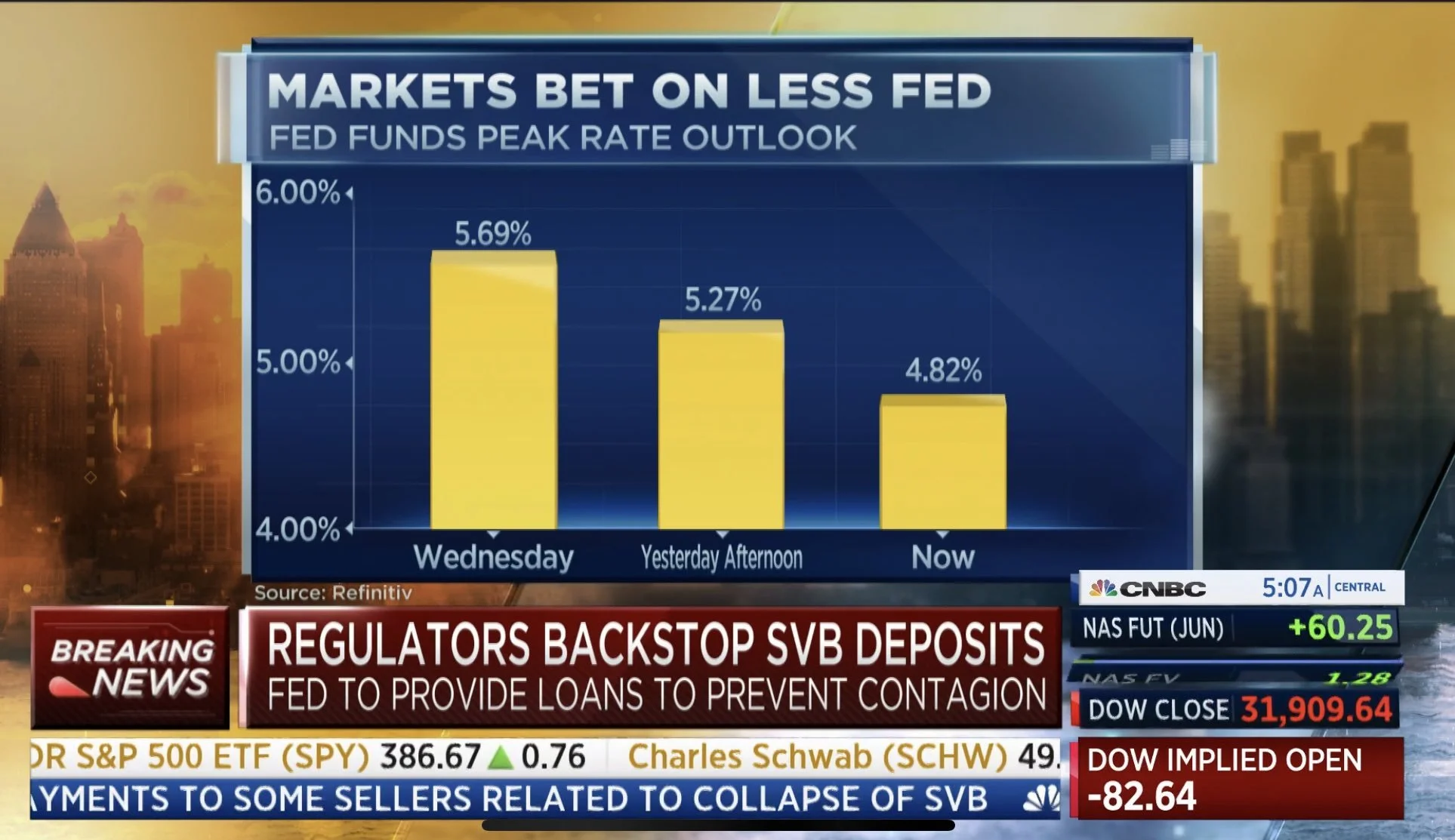 The ongoing fallout from the “Sunday Savior” decision is that the market is starting to feel the Federal Reserve may pause their interest rate increases, citing the damage those increases have caused at least two banks. The Federal Reserve has a pretty damn good reason to now “pause and see” if the work they’ve already done is enough and inflation can continue to trend lower over the coming months without higher rates. If they continue to raise rates, they run the risk of additional strain and stress on the banking system and economy.